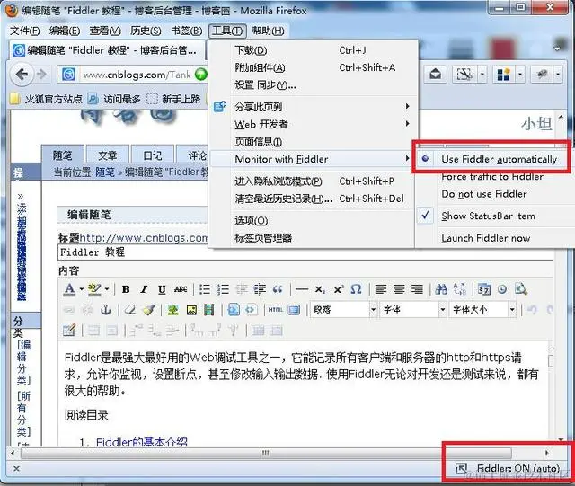修改Firefox 中的代理比较麻烦, 不用fiddler的时候还要去掉代理。 麻烦