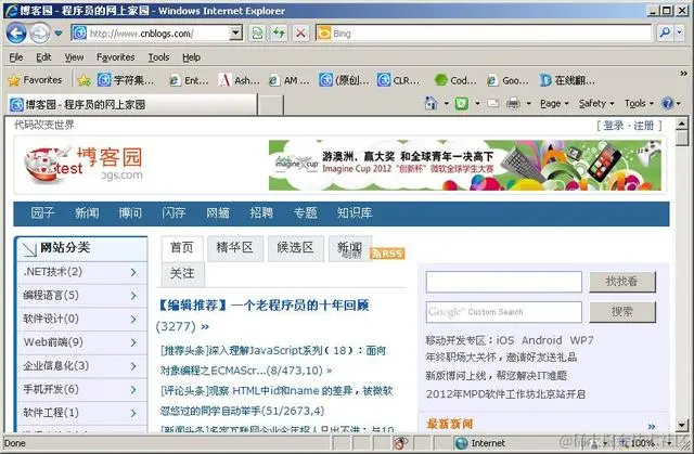 5. 再用IE博客园首页, 你会看到首页的图片用的是本地的。
