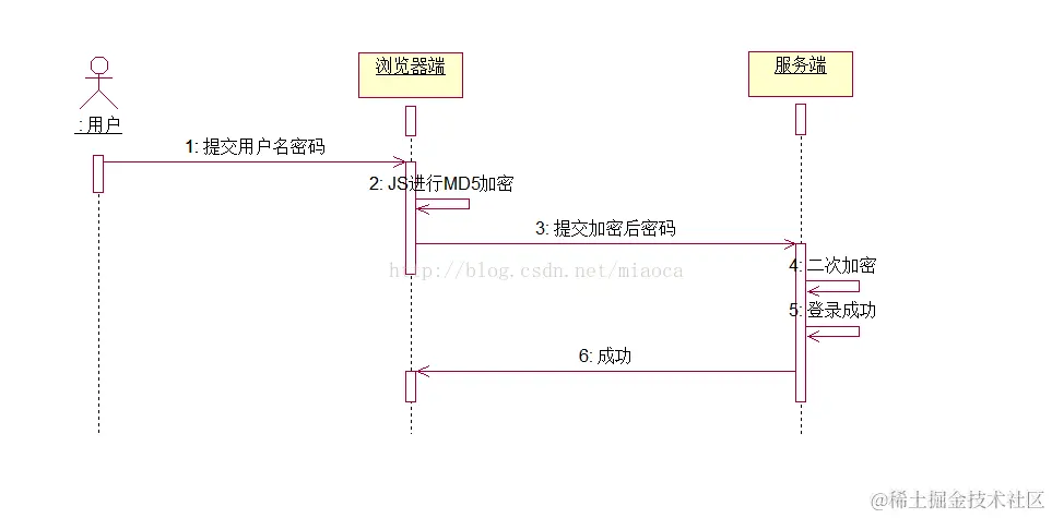 MD5传过去,服务器端把数据库里的密码做MD5后两相比对,等于还是拿POST过去的串原样比对。那我截获MD5串以后,原样POST给server端,不是一样能通过验证?我说,我们可以加点盐(salt),就是在做MD5之前给密码原文加上某个字符串后再做MD5运算。要点在于,这个salt,是每次提交之前跟服务器端实时申请的,而且会在很短的时间内自动过期(因为申请和验证之间的时间间隔只是两次连续http请求的时间,所以这个过期时间可以很短),这个salt只用一次,验证之后无论成功与否都会在服务器端强制作废。这样的话,截获任何一次MD5加密串,都无法用于另一次登录验证。