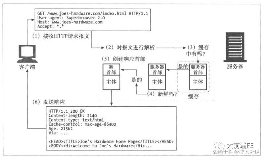 5、创建响应——缓存会用新的首部和已缓存的主体来构建一条响应报文。