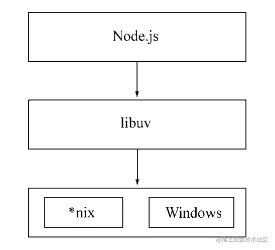 起初,Node.js 只能在 Linux 平台上运行。后来随着 Node.js 的发展,微软注意到了它的存在,并投入了一个团队帮助 Node 实现 Windows 平台的兼容,在 v0.6.0 版本发布时,Node 已经能够直接在 Window 平台运行了。 Node 是基于 libuv 实现跨平台的,它处于操作系统与 Node.js 上层模块之间。libuv 也是很多系统实现跨平台的基础组件。