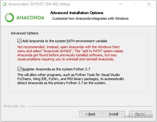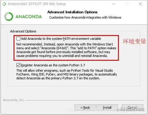 接下来是重中之重,第一个选项是添加环境变量,默认是没有勾选的,请务必勾选上,如果这里不勾选,后续安装完成后想要自行添加环境变量会非常麻烦。勾选完后点击 Install 安装。如果忘了勾选可以卸载重装。