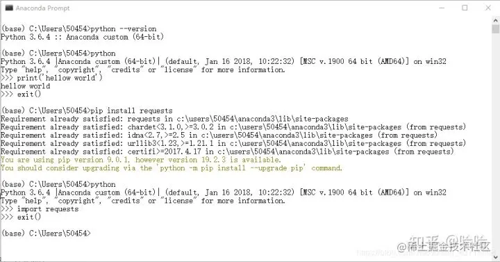 安装完成之后我们键入python进入解释器并import requests包, 这次一定就是成功的.