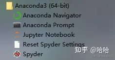 安装完成后在开始菜单会多出一个快捷方式,也就是Anaconda下的4个子程序: