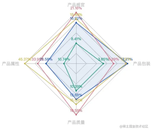 根据指标声量和指标满意度,我们可以将产品指标分为强势区、维持区、改善区和次改善区;强势区指标声量高且指标满意度高于80%,是产品的优势点;维持区指标相对不高,消费者关注度偏低,但满意度高于80%,改善区表示指标声量高于中位数,且满意度指标低于80%,企业需要重点关注并改进,次改善区满意度指标低于80%,声量相对偏低,但同样不容忽视。