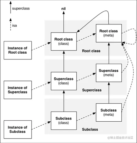 类对象的继承关系其实就是元类对象的继承关系,都需要都是super指针依次找对应方法
