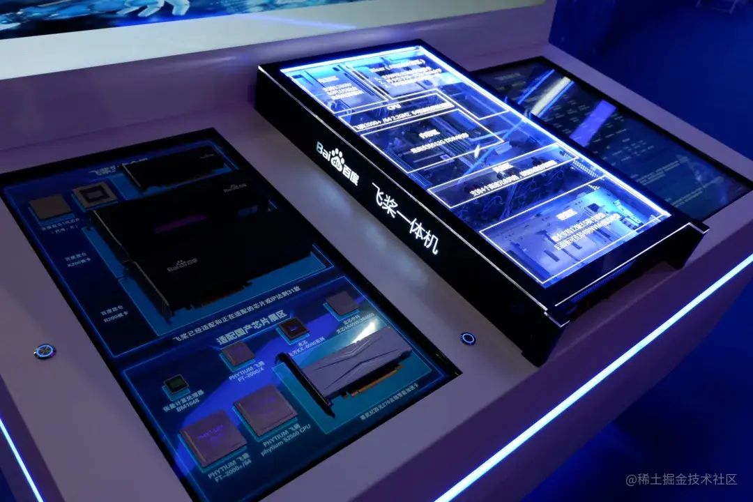 飞桨一体机还可扩展支持国内主流芯片,其中集成的百度自研昆仑芯片也在此次一同展出,具备完整的国产化解决方案,对于推动国内AI芯片技术研发和应用落地具有重要价值。