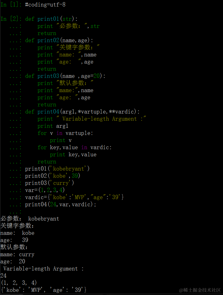 1.正式的参数传递类型有四种:必备参数,关键字参数,默认参数,不定长参数。
