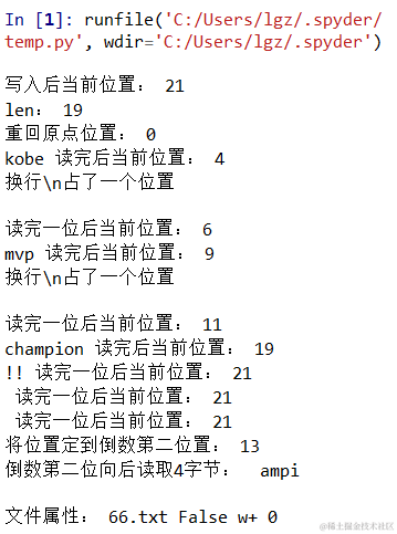 2.write()方法写进后当前只是位置将在内容后一个字节处,故写入后若想立即读所写,必须用seek()