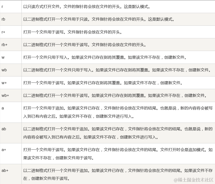 1.open()函数中第二个参数是打开文件的模式,常见有: