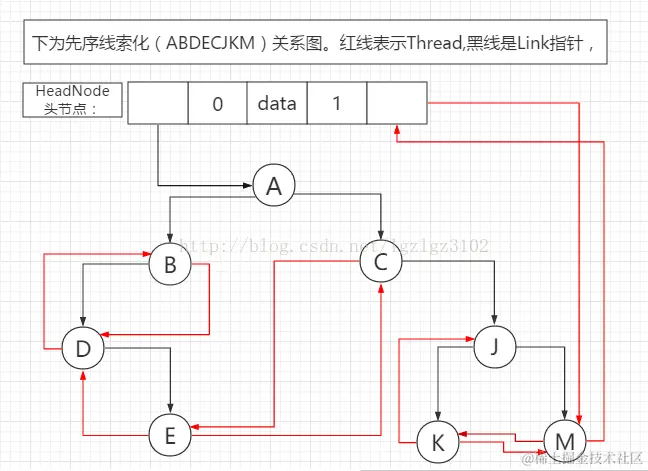 先序建立线索关系如下: