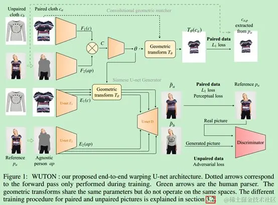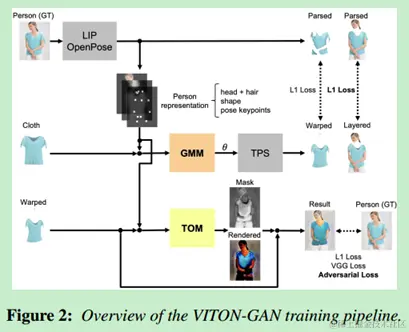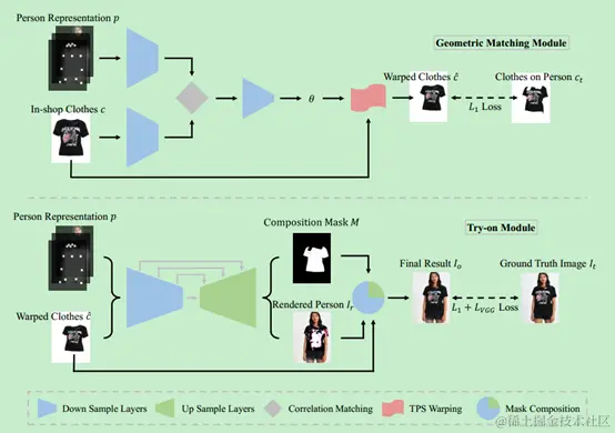 来自中山大学和商汤,对1中的VTION进行改进,提出方法主要由两个神经网络GMM与Try-On构成,可使试穿衣服更适合目标人物的体型,并保留服装的细节如纹理、刺绣等。