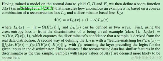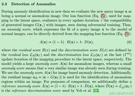 测试时,判断图像的异常与否的分值计算方法,可选择可AnoGAN基本一样的方法。
