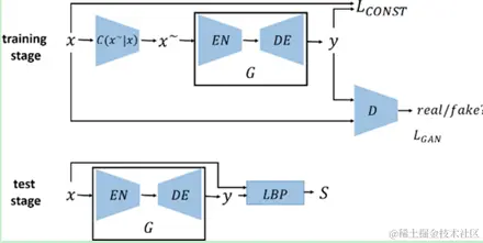 测试阶段,X输入EN-DE后得到理想正常样本y,使用LBP对Y和X逐像素特征比较,相差大则有缺陷。