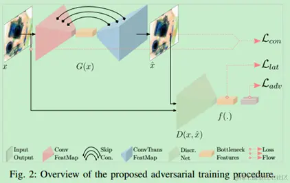 使用的是AAE来学习建模正常数据分布。有时,对于在正常分布的的两个数据之间的距离,比一个正常和一个异常之间的距离还大,所以提出在隐空间也加一个约束。