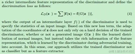 二是利用到训练好的判别器D,取G(z)和x在判别器D的中间层的特征层面的loss: