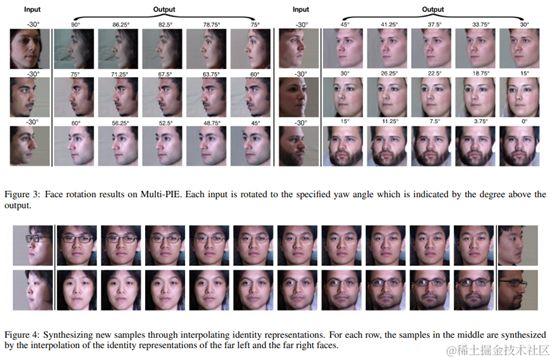 实验:CFP数据集。由500个人组成,每人包含10幅正面图像和4幅侧脸。在450个人上训练模型,并对剩余进行评估。基本框架架构遵循DCGAN 的实现。效果图如下,有些乍一看还挺好?