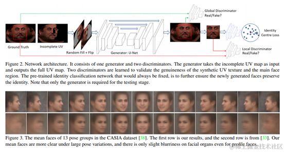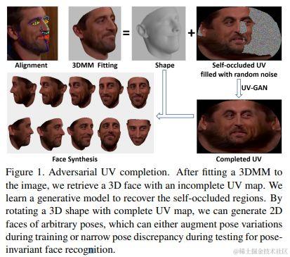 最近提出的鲁棒的3D人脸对齐方法在3D人脸模型和2D人脸图像之间建立了密集或稀疏的对应关系。这些方法的使用对于面部纹理分析既是挑战也是机遇。特别是,通过使用拟合模型(fitted model)对图像进行采样,可以创建面部UV。D但由于遮挡,UV图总是不完整的。本文提出UV-GAN,用生成的UV图生成任意姿态的2D面部图像。
