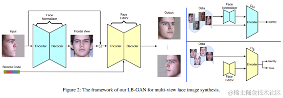 LBGAN将具有挑战性的综合问题分解为两个子任务:人脸标准化和人脸编辑。标准化首先对输入图像进行正面化,然后编辑器将正面化的图像旋转到所需姿势。为了生成逼真的局部细节,对标准化器和编辑器进行两阶段训练,并通过有条件的self-cycle loss和基于L2 loss的attention进行约束。