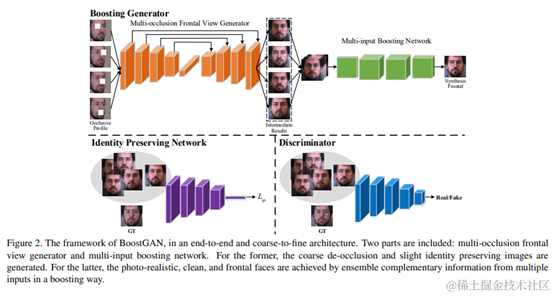 具体来说,提出一个BoostGAN,用于去遮挡,正面化和面部识别。基于面部遮挡是部分且不完整的假设,多个遮挡块的图像将作为输入,也就是所谓的的“knowledge boosting”,例如身份和纹理信息。然后,进一步设计了一种新的聚合网络模块,用于最终精细的图像合成。