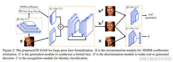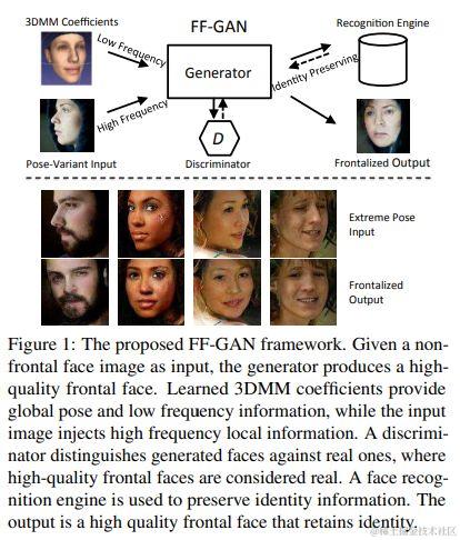 尽管最近在使用深度学习的面部识别方面取得了进步,但是在较大的姿势变化下,严重影响性能。学习姿势不变特征是一种解决方案,但是需要昂贵的大规模数据标注和精心设计的特征学习算法。本文结合 3D Morphable Model (3DMM) 和 GAN 来进行人脸转正,称为FF-GAN。