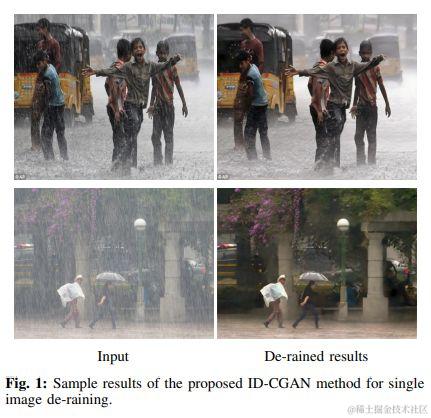 本文试图通过附加约束条件来利用条件生成对抗网络(CGAN)的强大生成建模功能:该约束条件是去雨后的图像必须与其相应的GT清晰图像无法区分开。