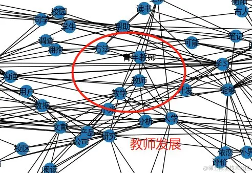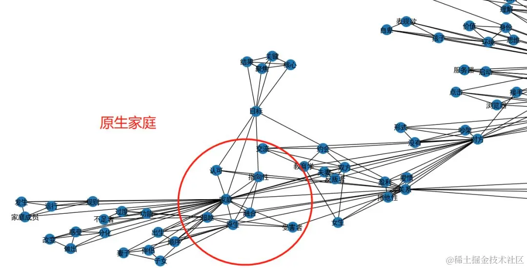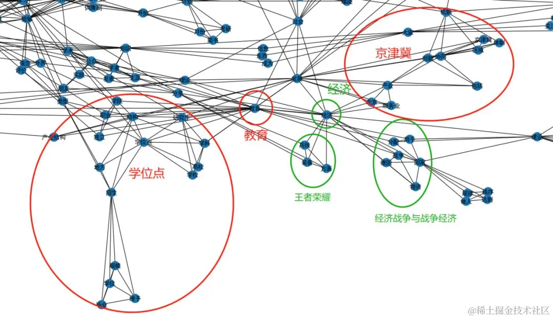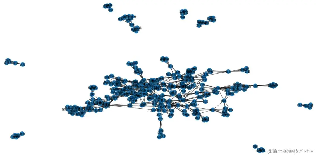 在完成共词矩阵的构造后,绘图部分同样使用Python实现,所幸在Python中也有前人做好了轮子。使用的是networkx。结果如下图。