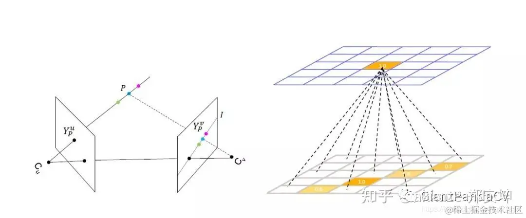 重投影过程,这样的重投影也许也能用来重投影featuremap,但是volume的大小和分辨率与task直接相关,从而直接影响计算量。一个直接的改进是给多视图每个featuremap一个weightmap,也就是每个点一个权重,加权融合到一起