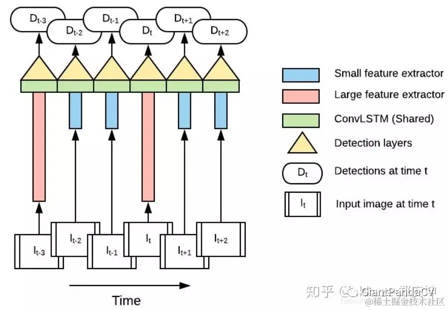 1. conv+lstm(memory based),slow fast架构,还有两者的结合,另外还有基于光流的架构,在已知光流的情况下,通过前向warp或者后向warp,能在时间维度上前后转移feature map,这是基本的出发点。个人其实挺喜欢光流的,因为如果不追求end2end的话,光流可以被用在很多地方(当然,如果考虑时间的话,memory based方法产生的feature map也可以用在其他任何地方,只是不像光流那样可以从网络里面拆出来),当然对于特别追求精度的地方,e2e会更好。memory based方面的工作我个人非常推崇google的looking fast and slow。