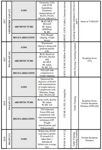 尽管取得了成功,但GAN仍然难以训练。每次更新网络的任何参数(判别器或生成器)时,都会导致不稳定。当前的研究致力于为各种应用(例如图像和视频生成[15] [16] [17],领域自适应[3] [18] [19] [20],语音合成[21] [22] [23],语义图像编辑[2] [24]等)寻找【稳定的架构,损失和超参数组合】。尽管这些模型在特定应用中获得了有趣的结果,但尚无透彻的共识或研究可用来参考、了解哪种GAN的性能更优。在本文中旨在缓解上述问题,并通过技术框架缩小备选GAN的范围。