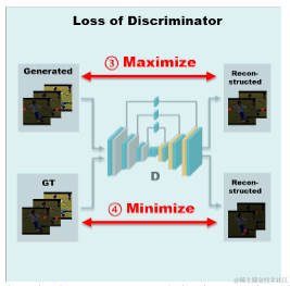 鉴别器的目标是区分输入进来的热图是GT还是生成器生成的虚假热图。鉴别器最终的训练目标就是能够把生成器生成的数据尽可能和GT区分出来。从而和生成器形成一个对抗博弈的过程。因此,如下图所示,训练鉴别器时,其通过两部分进行优化,分别为反向传播来自鉴别器的损耗Lreal和来自鉴别器的损耗Lfake。