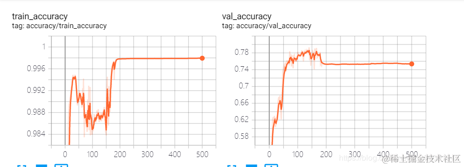 最后是精度走势图,主要包括训练精度和测试精度。 其中训练精度是在源域数据集即MNIST数据集上的统计结果,验证精度是在目标域数据集即MNIST-M数据集上的统计结果。从图中可以看出,DANN在训练MNIST-M数据集时没有使用对应的标签,MNSIT-M数据集上的精度最终收敛到75.4%,效果相比于81.49%还有一定距离,但鉴于没有使用任何数据增强和dropout,这个结果可以接受。