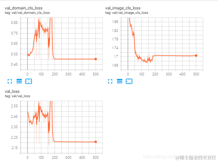 接下来是验证误差的走势图,主要包括验证域分类误差、验证图像分类误差和验证总误差。