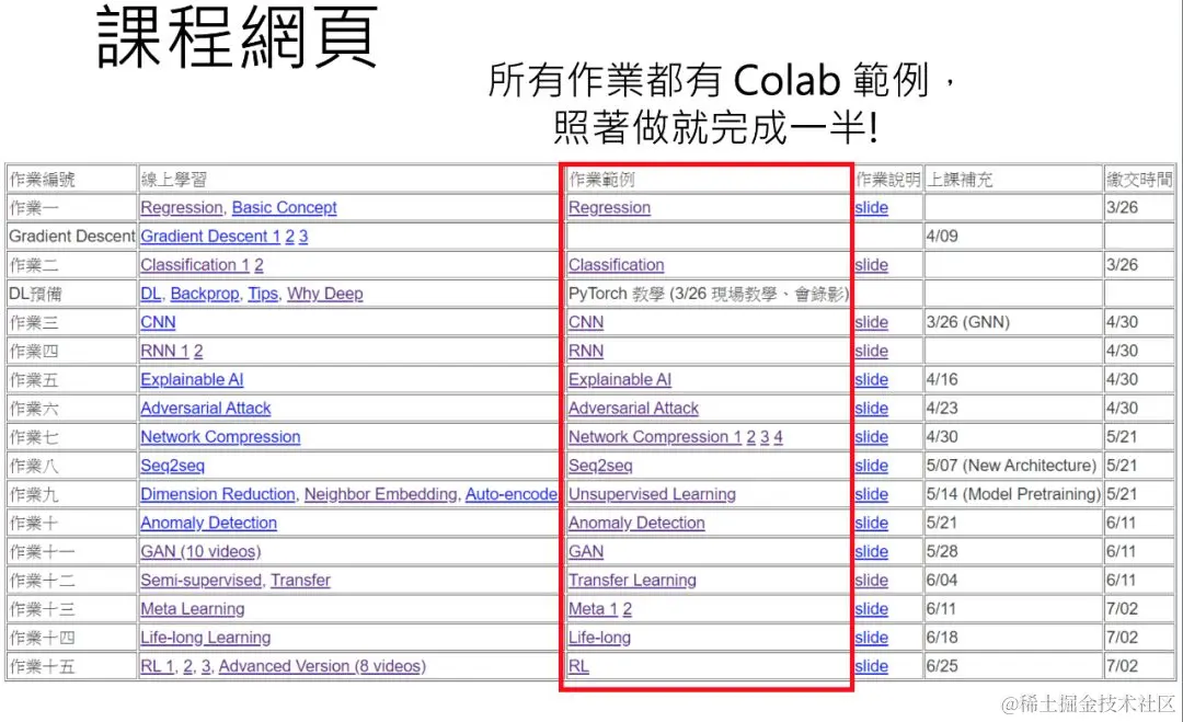 可能是考虑到当下为特殊节点,「精灵宝可梦大师」再三强调,这学期完全不用来课堂上课,通过上图课程链接进行系统的学习就足以 get 到所有核心知识点。而对长期 Online 学习的学生来说则更加友好了,基本涵盖当下 ML 核心知识点的作业也是完全对外开放。