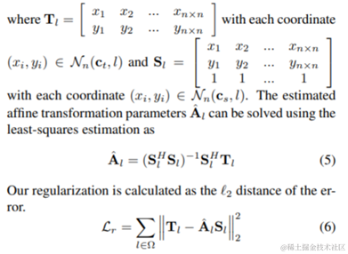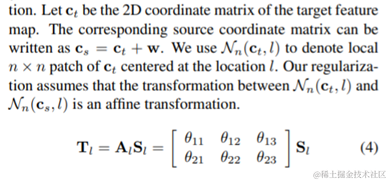 采样正确性损失约束流场对语义相似的区域进行采样。而图像邻域的转换变形是高度相关的,如果能够提取这种关系将是有益的。因此,添加正则项用于惩罚不是仿射变换的局部区域: