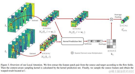 根据流w和f_t、f_s,提取一对特征块进行注意力计算: