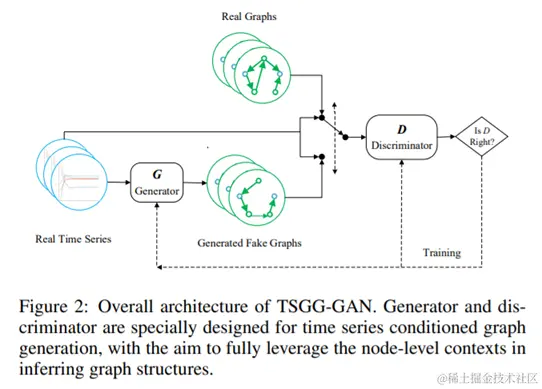 基于深度学习的方法已被利用建模并生成不同分布下的图graph。但它们通常是基于无监督学习、无条件生成模型,或者仅仅是基于graph-level的上下文,它们不具有丰富的语义node-level的上下文。本文对一个新的时间序列条件图生成问题展开研究:给定多时间序列,去推断一个目标关系图,它对每个时间序列之间的潜在相互关系进行建模(每个时间序列对应一节点)。提出了一种新颖的时间序列条件图生成生成对抗网络(TSGG-GAN)。在合成和真实基因调控网络数据集的实验上证明了TSGGGAN的有效性。