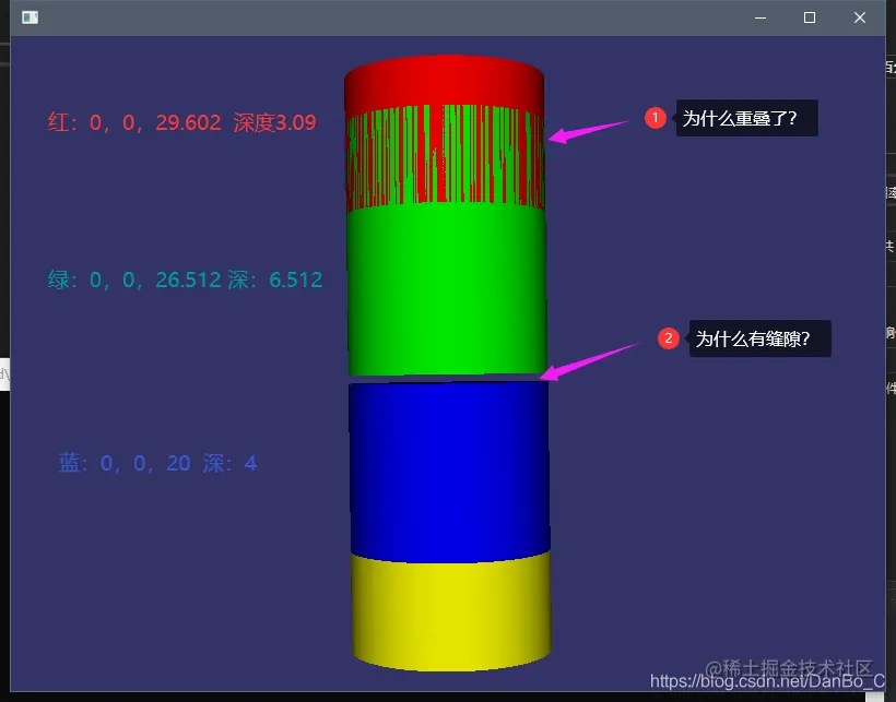 今天尝试叠加几何体,却出现了重叠,缝隙的问题。