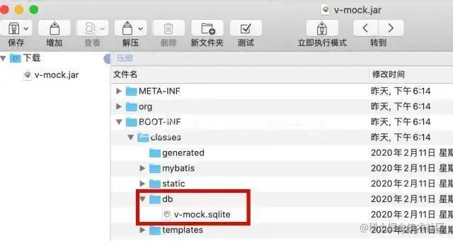 开发时,DB可视化工具也连接的是target/classes/db/v-mock.sqlite,所以当时并没发现疑点.