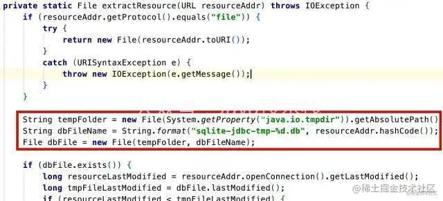 一路追随sqlite的jdbc驱动源码,找到了org.sqlite.SQLiteConnection的extractResource方法,看到了命名代码: