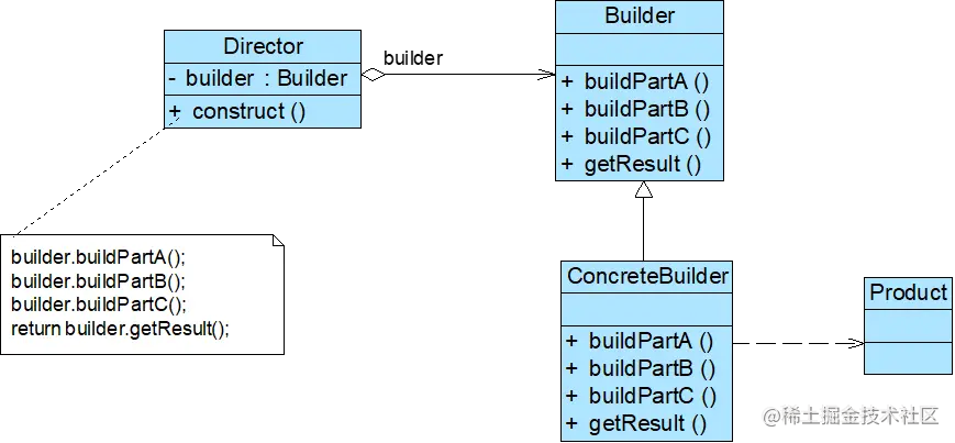 Builder(抽象建造者)ConcreteBuilder(具体建造者)Product(产品)Director(指挥者)
