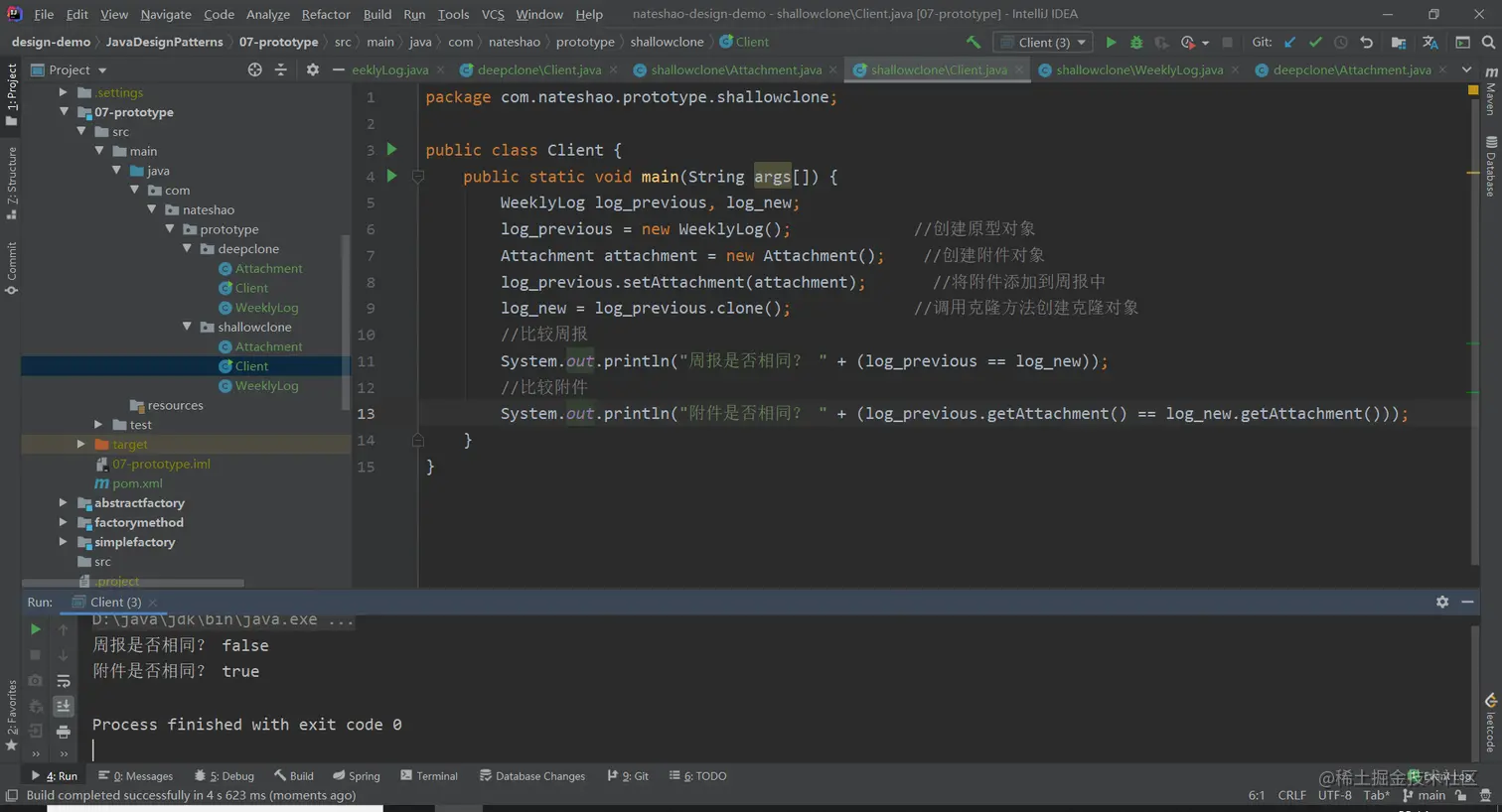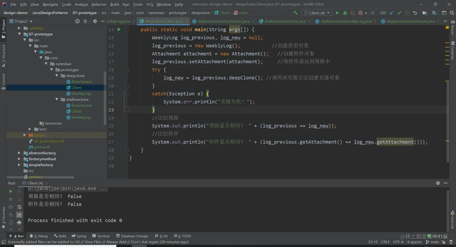 工作周报对象被成功复制,但是附件对象并没有复制,实现了浅克隆