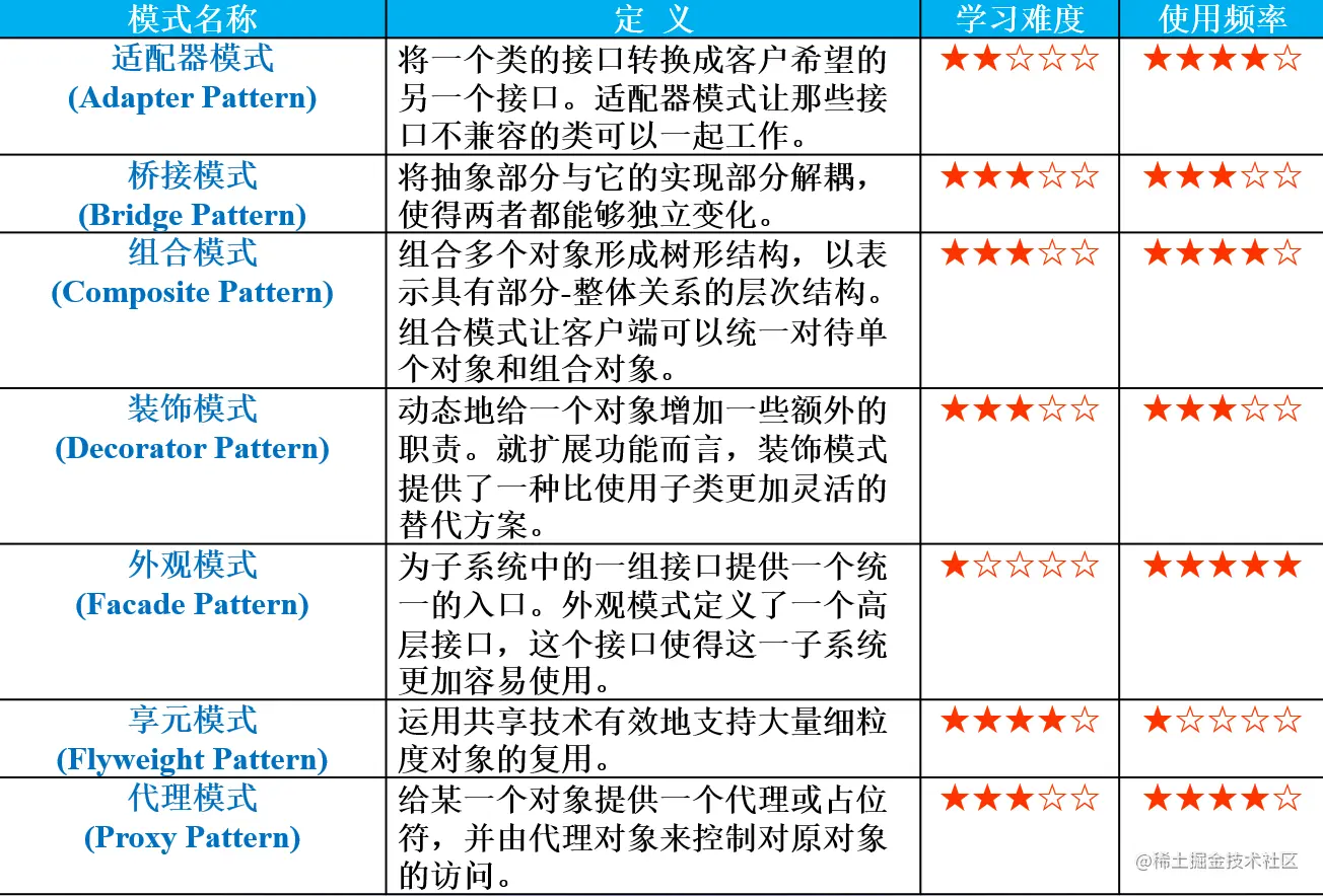 结构型模式一览表