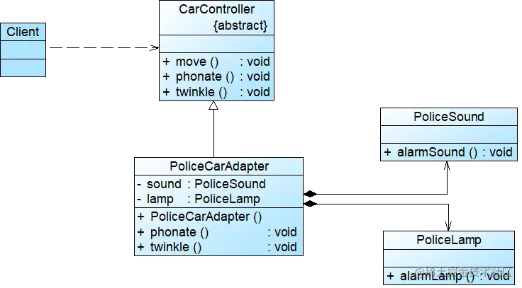 - PoliceCarAdapter:警车适配器,充当适配器