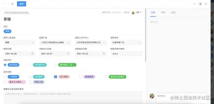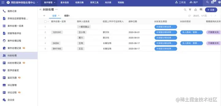 通过用明道云搭建预防接种保险处理应用,在很大程度上可以规范索赔流程,并且保留索赔环节中发生的各种痕迹,例如伤害评定、纠纷处理、诉讼处理、合议会等资料,最终形成一个完整的案件档案。