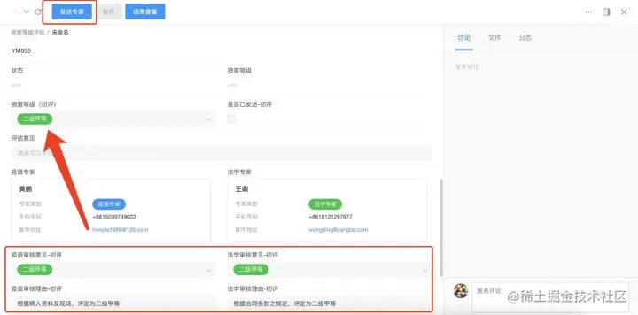 专家团由疫苗专家和法律专家构成,通过按钮【发送专家】,将链接发送至专家手机,专家通过手机打开链接即可进行线上评定。评定过程有以下几种情况: