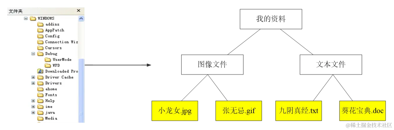 在树形目录结构中,包含文件和文件夹两类不同的元素