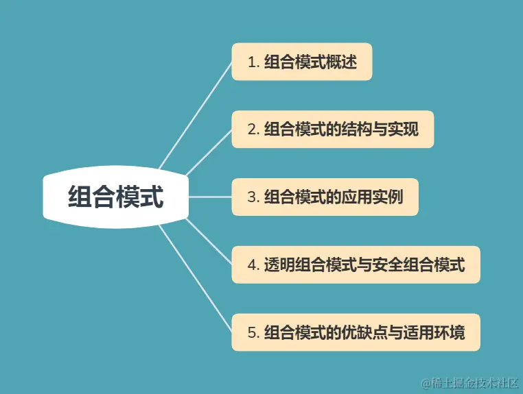 组合模式通过一种巧妙的设计方案使得用户可以一致性地处理整个树形结构或者树形结构的一部分,它描述了如何将容器对象和叶子对象进行递归组合,使得用户在使用时无须对它们进行区分,可以一致地对待容器对象和叶子对象。
