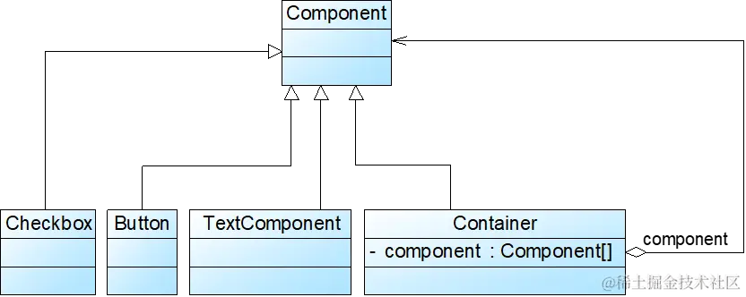 - 在具有整体和部分的层次结构中,希望通过一种方式忽略整体与部分的差异,客户端可以一致地对待它们