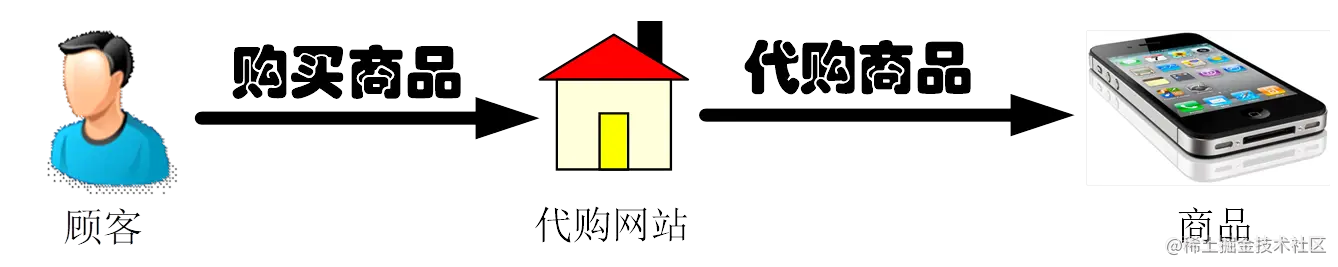 - 代购商品:顾客 -> 代购网站 -> 商品